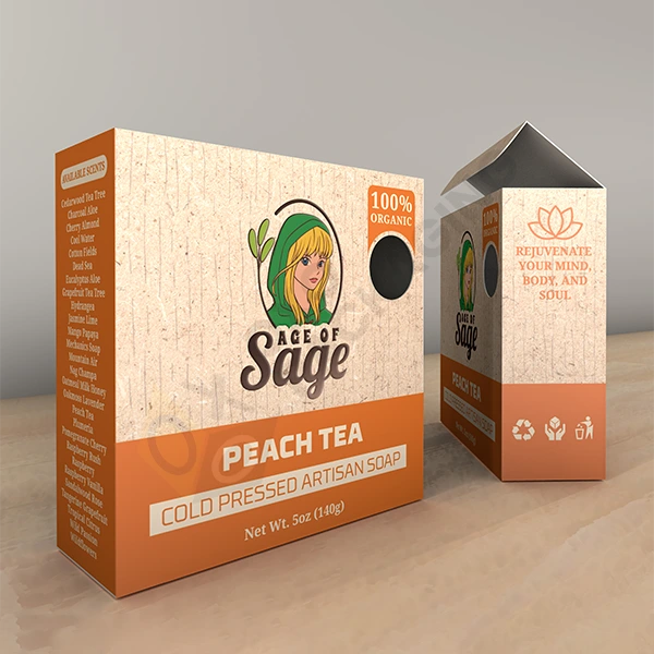 We make tuck-top soap boxes with cardboard and Kraft paper that are perfect for printing any sort of image, design, color, and illustration. Finally, we also apply premium lamination finishes to add a luxurious touch to your boxes. These tuck-top soap packaging boxes are best if you want to add splendor and safety to your product.