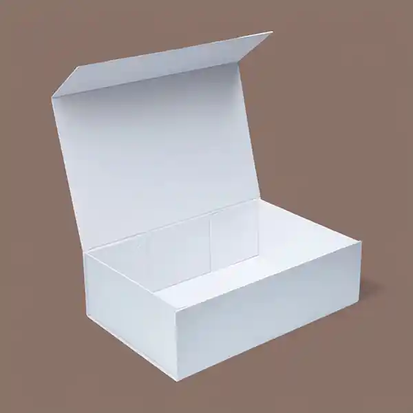 - Magnetic Flap Boxes: A 2 piece white rigid box having a magnetic flap gives a refined look to luxury items. Magnetic closure offers a smooth closure to the premium box and provides convenience to the customer.